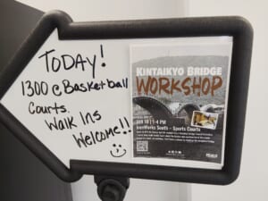 1月10日(土)、米海兵隊岩国航空基地の体育館で、基地内に住む大人を対象とした「錦帯橋ワークショップ」(主催:MCCS岩国図書館)が開催されました。