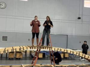 完成後には、児童と先生、保護者の方にも模型の上に乗っていただいて、強度を体験してもらいました。